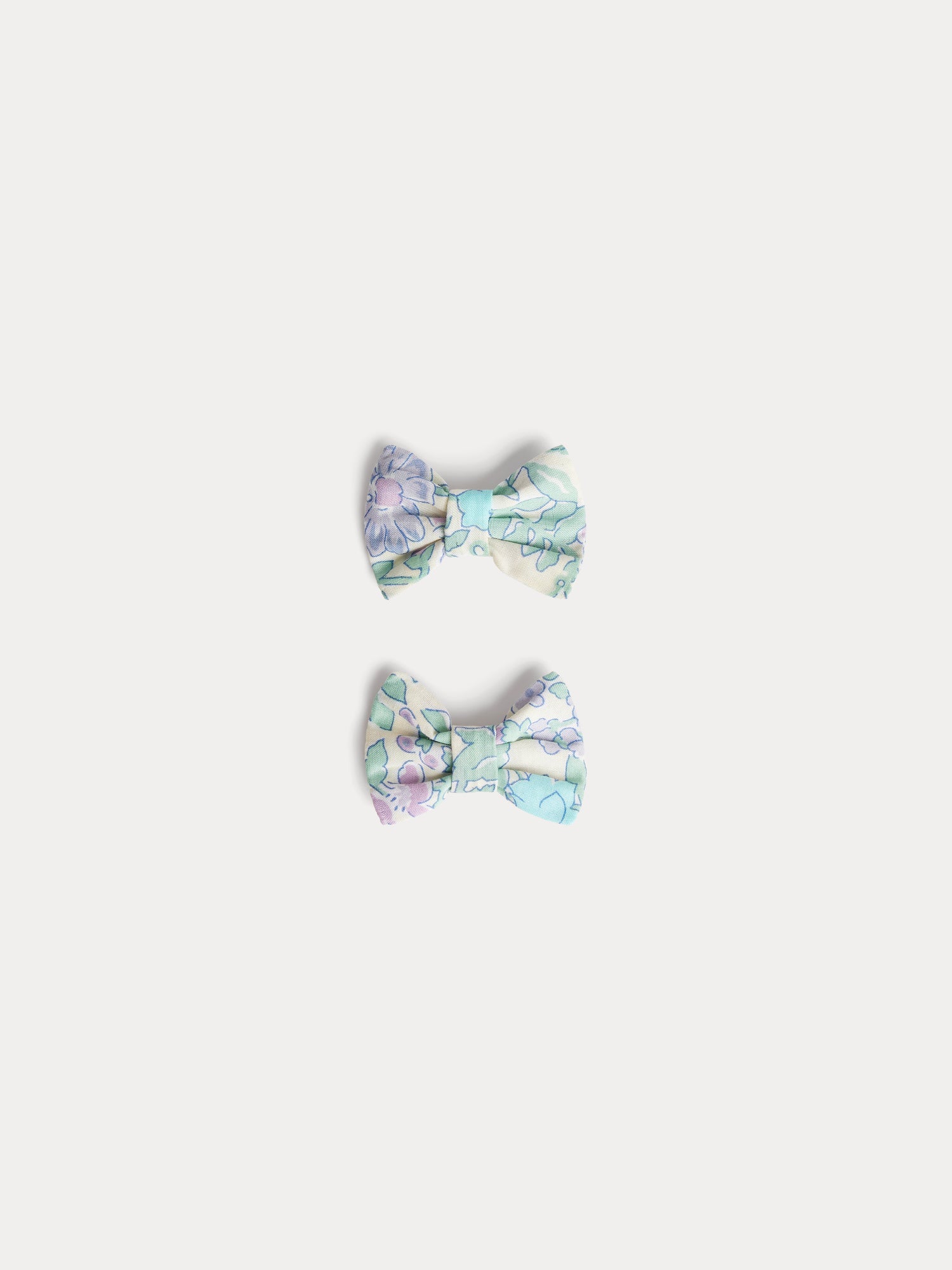 This set of two Miniclic hair clips for girls uses floral Liberty fabric to brighten up these essential accessories. They come in the shape of a bow.