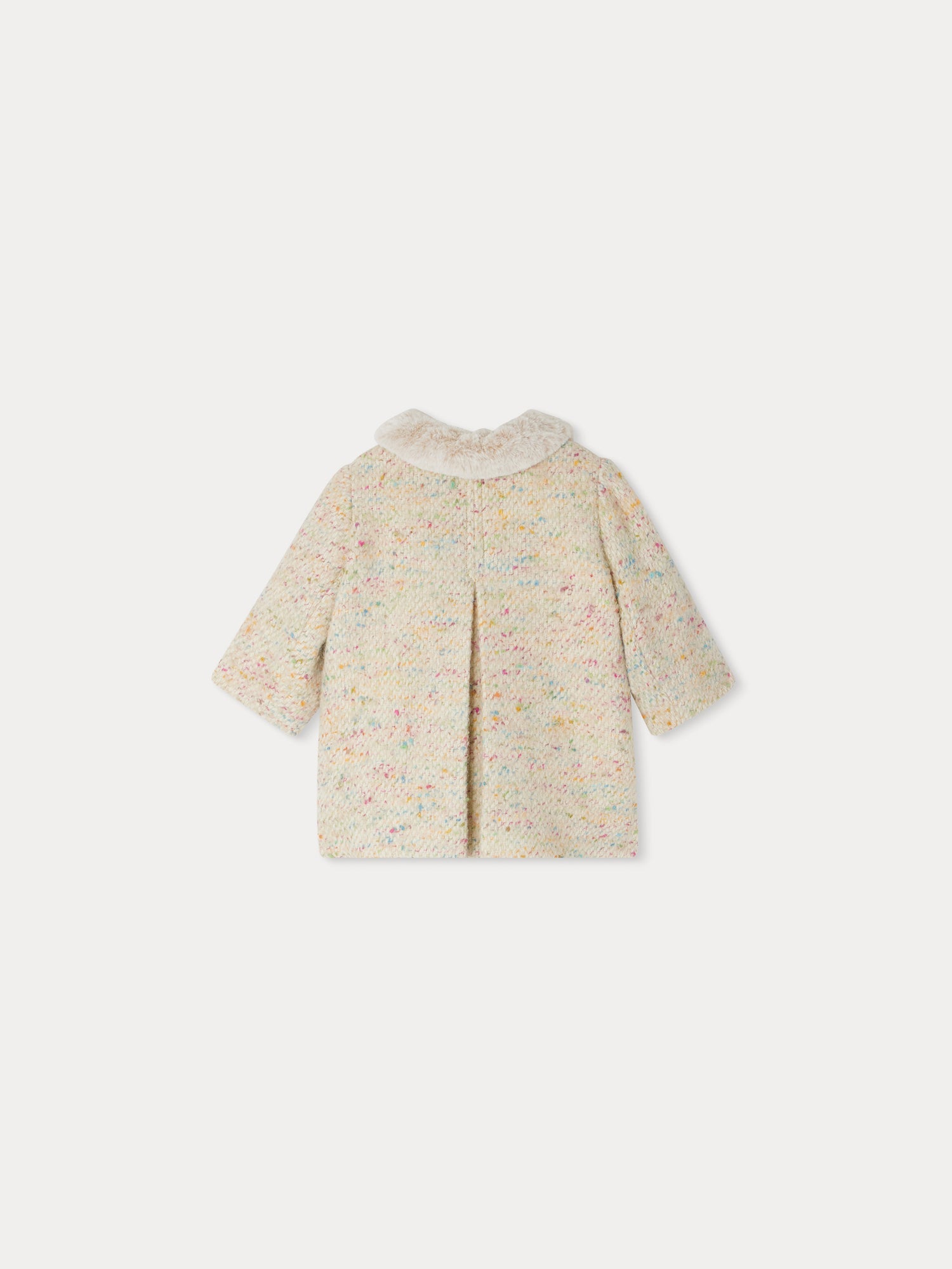 This Moka wool and alpaca coat is perfect for keeping babies warm. It goes beautifully with formal outfits thanks to its elegant fur collar.