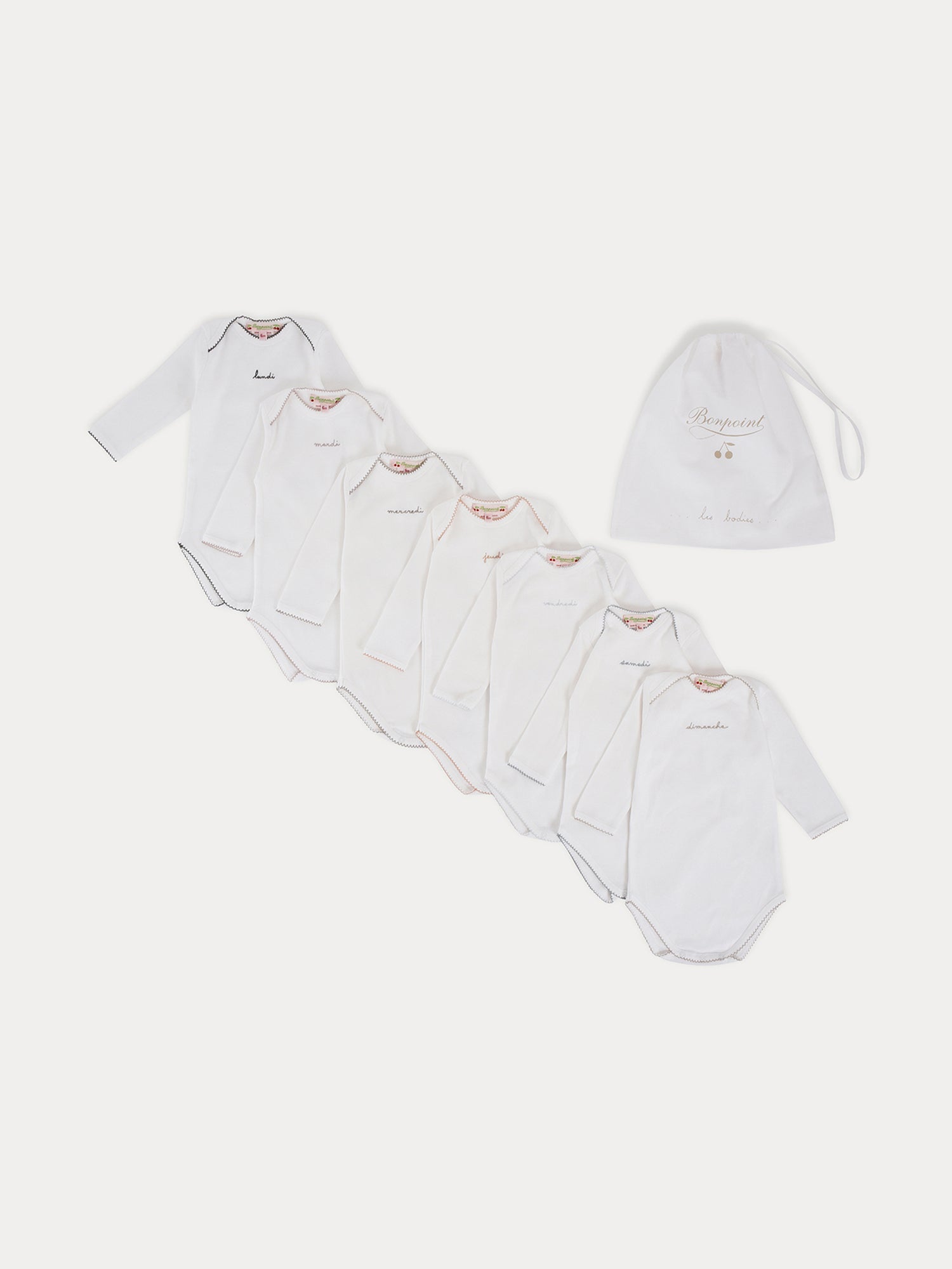Every morning brings a fresh outfit with this lot of bodysuits with long sleeves. Designed in smooth cotton and delicately embroidered with the days of the week, they will keep your baby warm while being gentle on the skin.