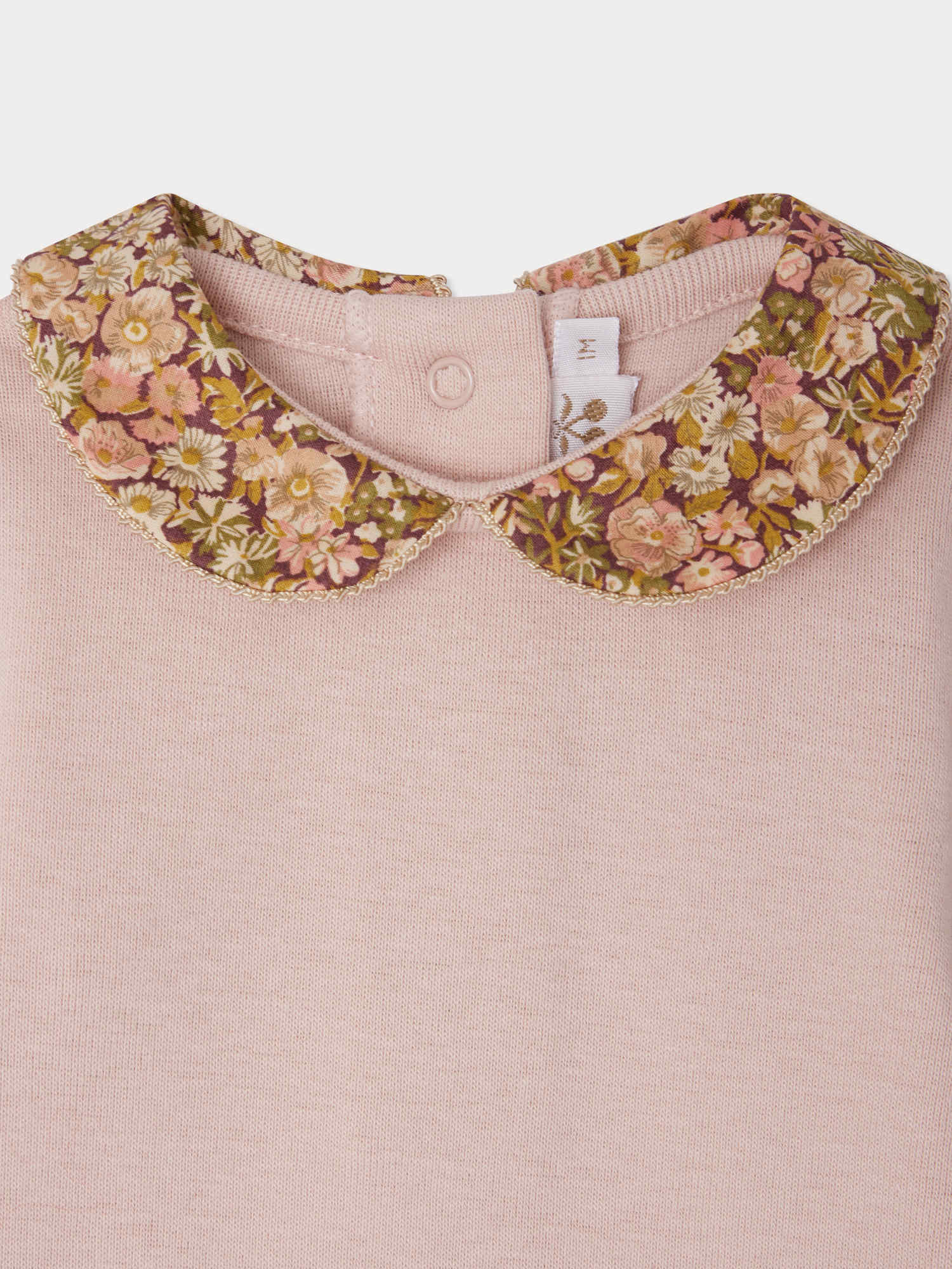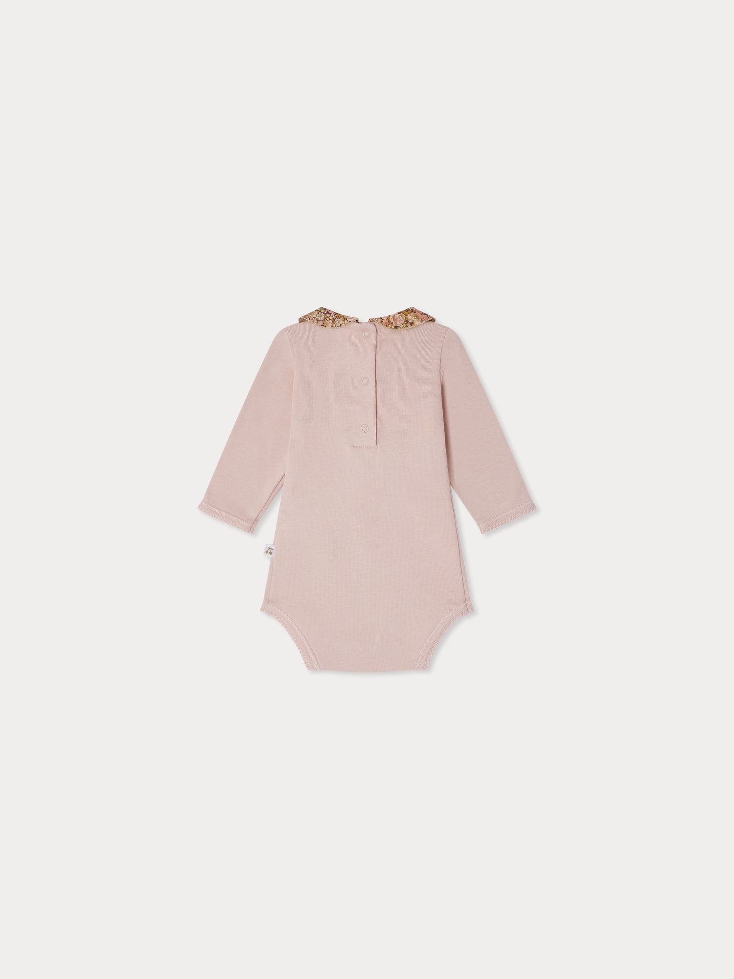 Pink Swan bodysuit with Liberty fabric collar in organic cotton