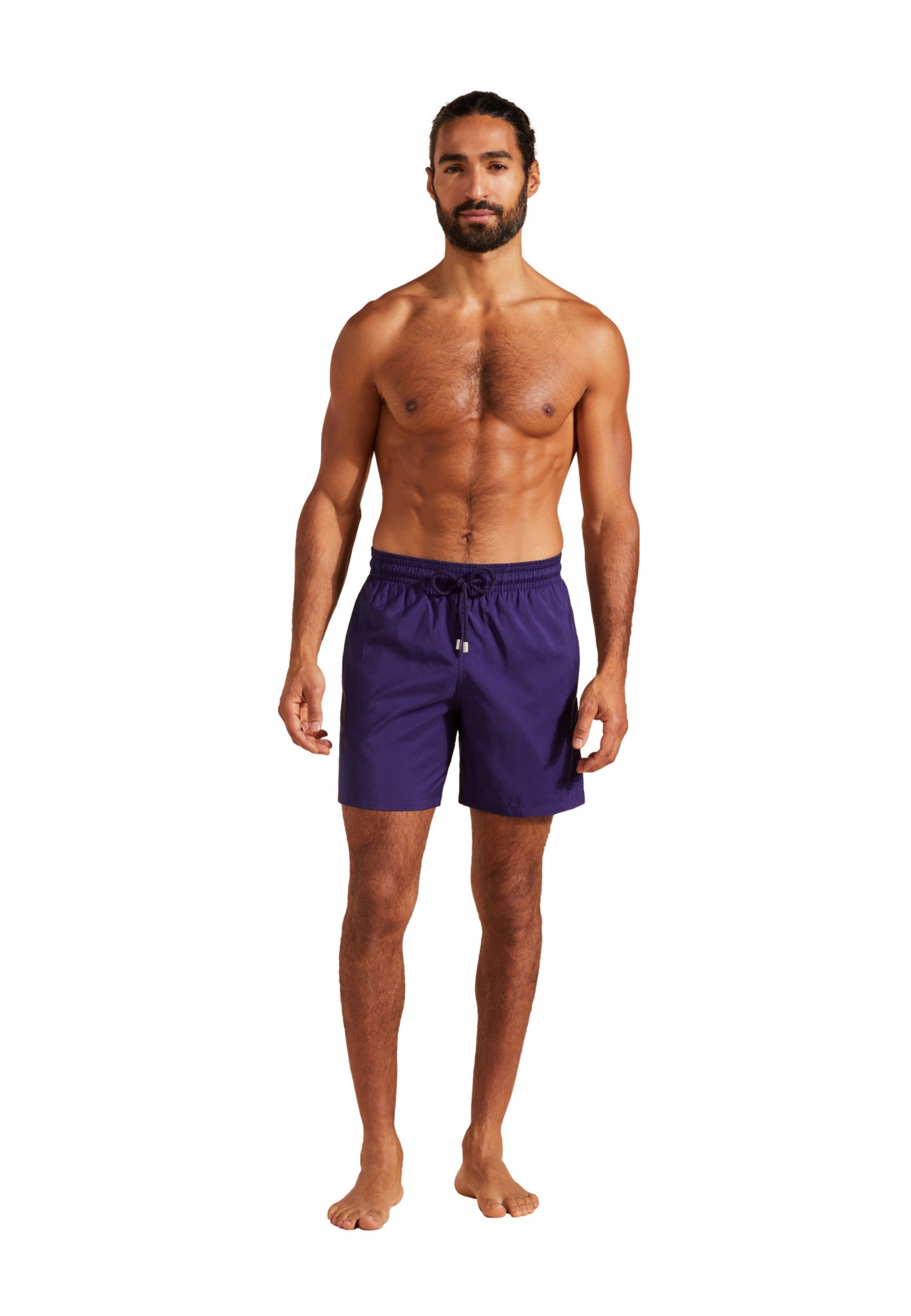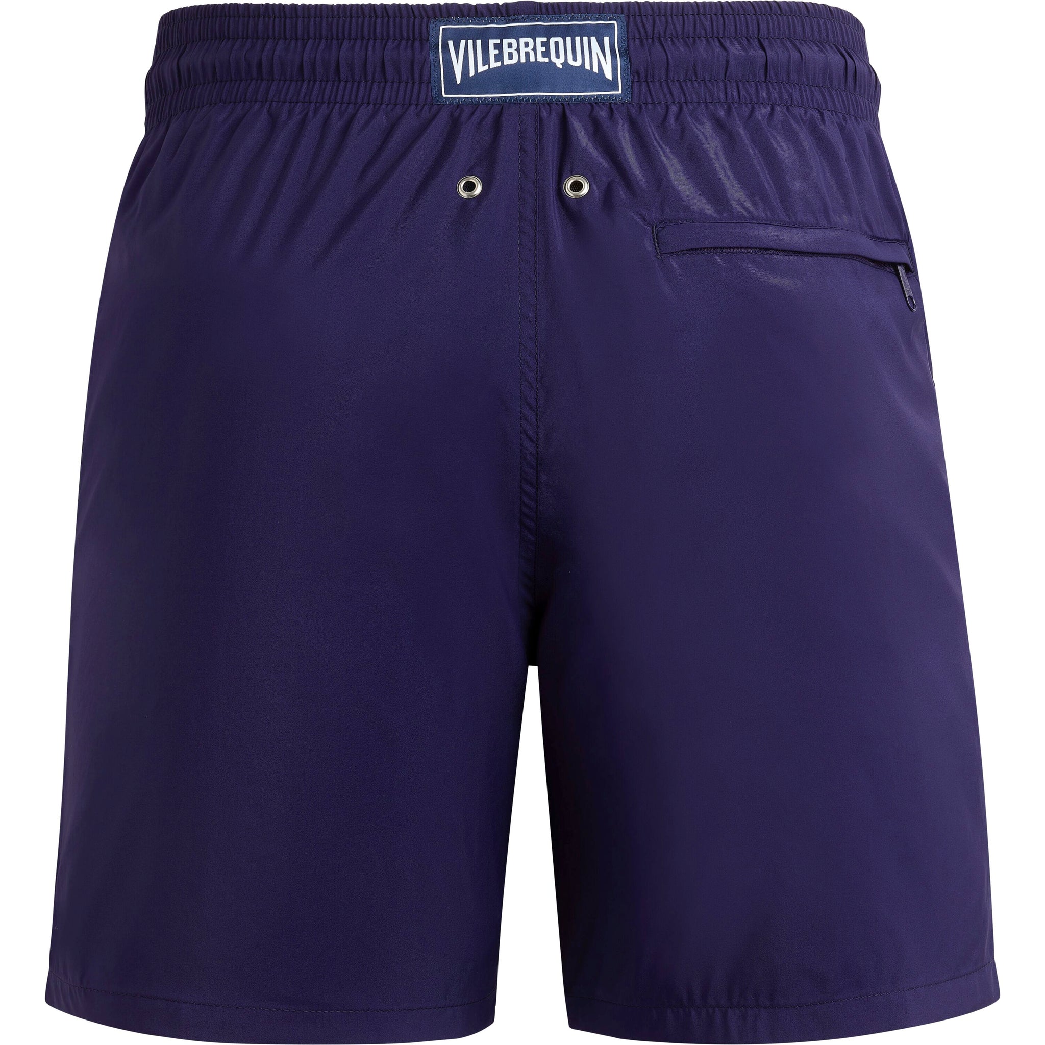 - Ultra-light fabric packable men swimwear into the zipped back pocket to become a pouch with a Vilebrequin rubber label