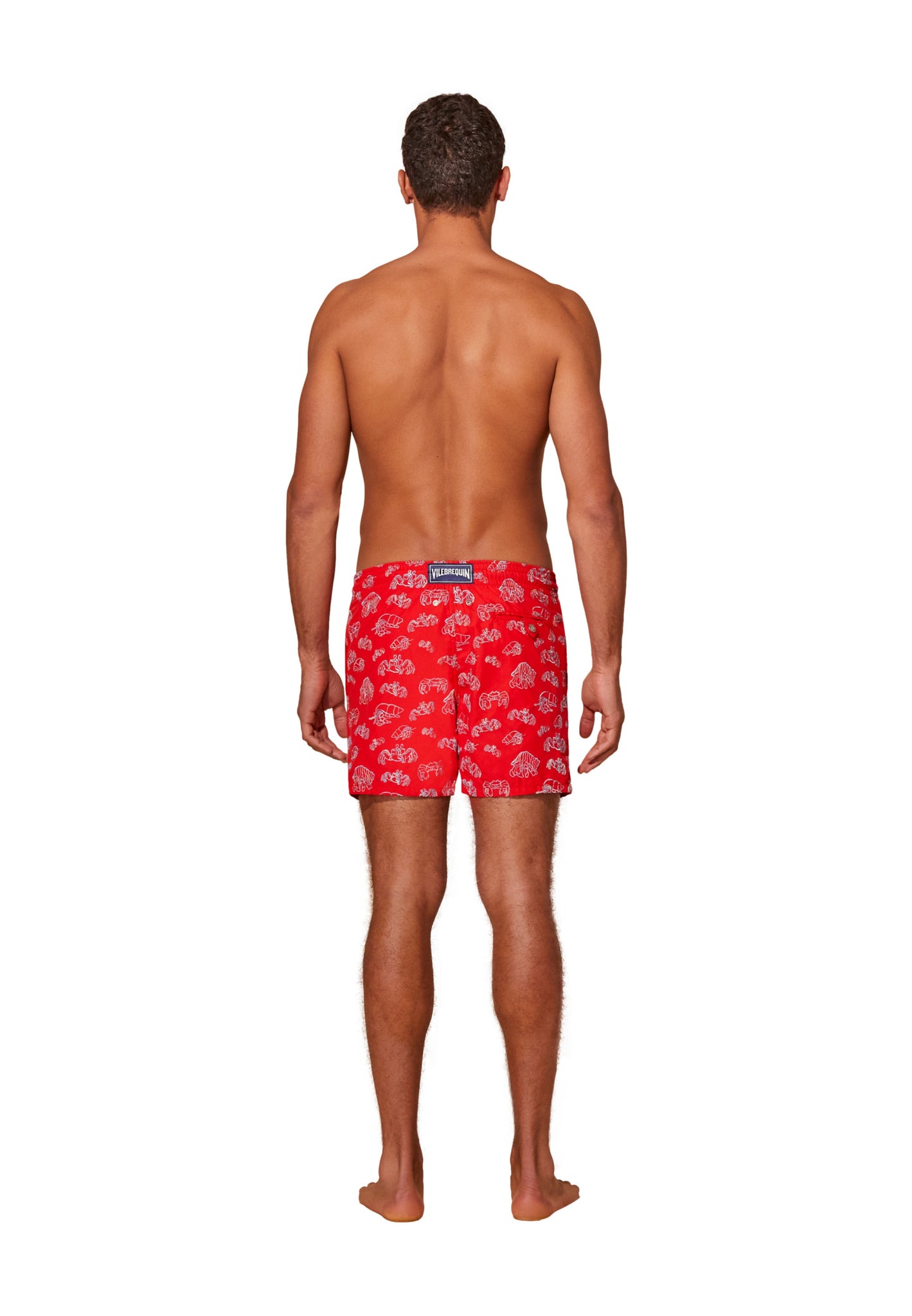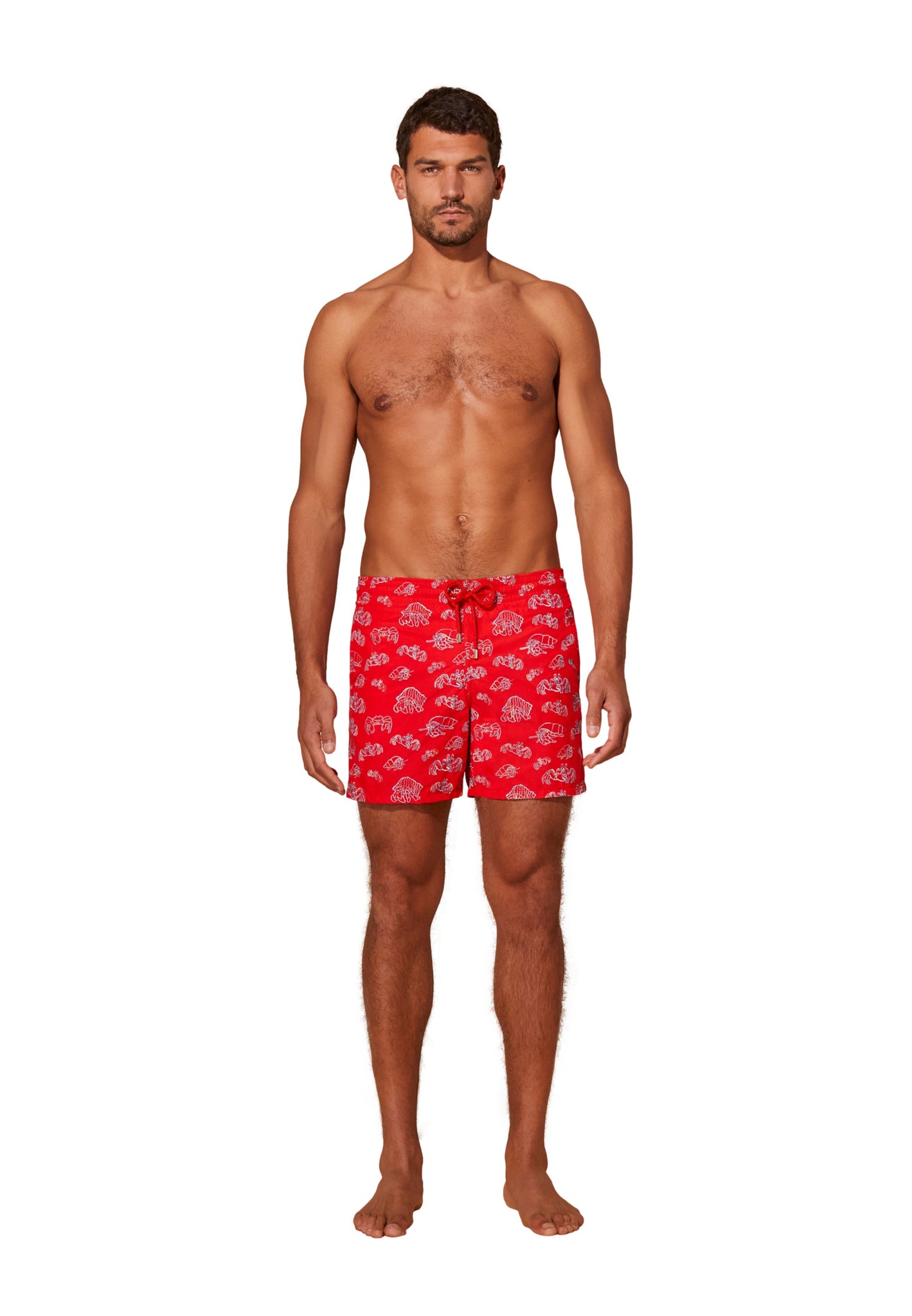 - Embroidered men swim trunks, limited edition : 199 pieces for the color navy blue, 199 pieces for the color poppy red