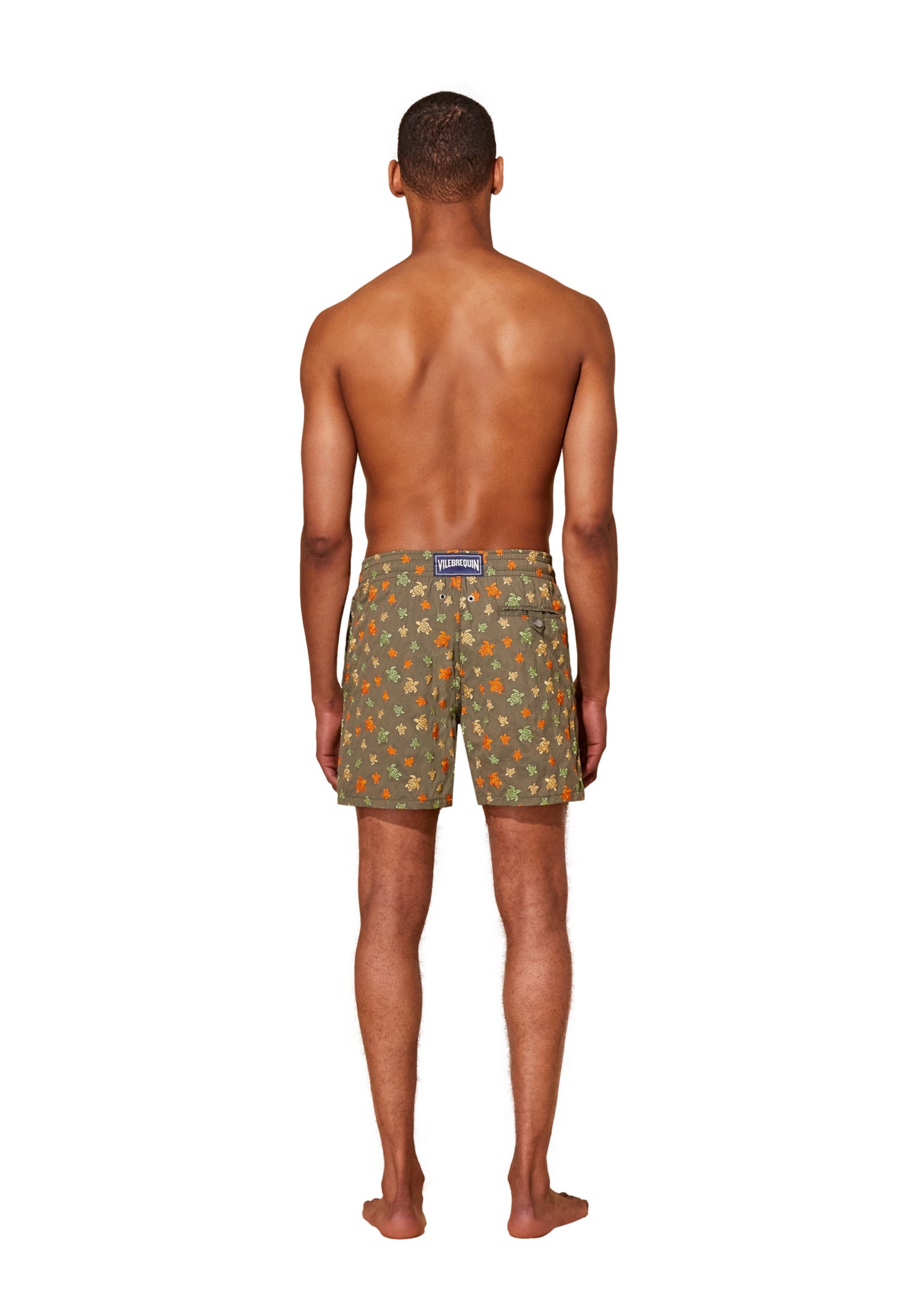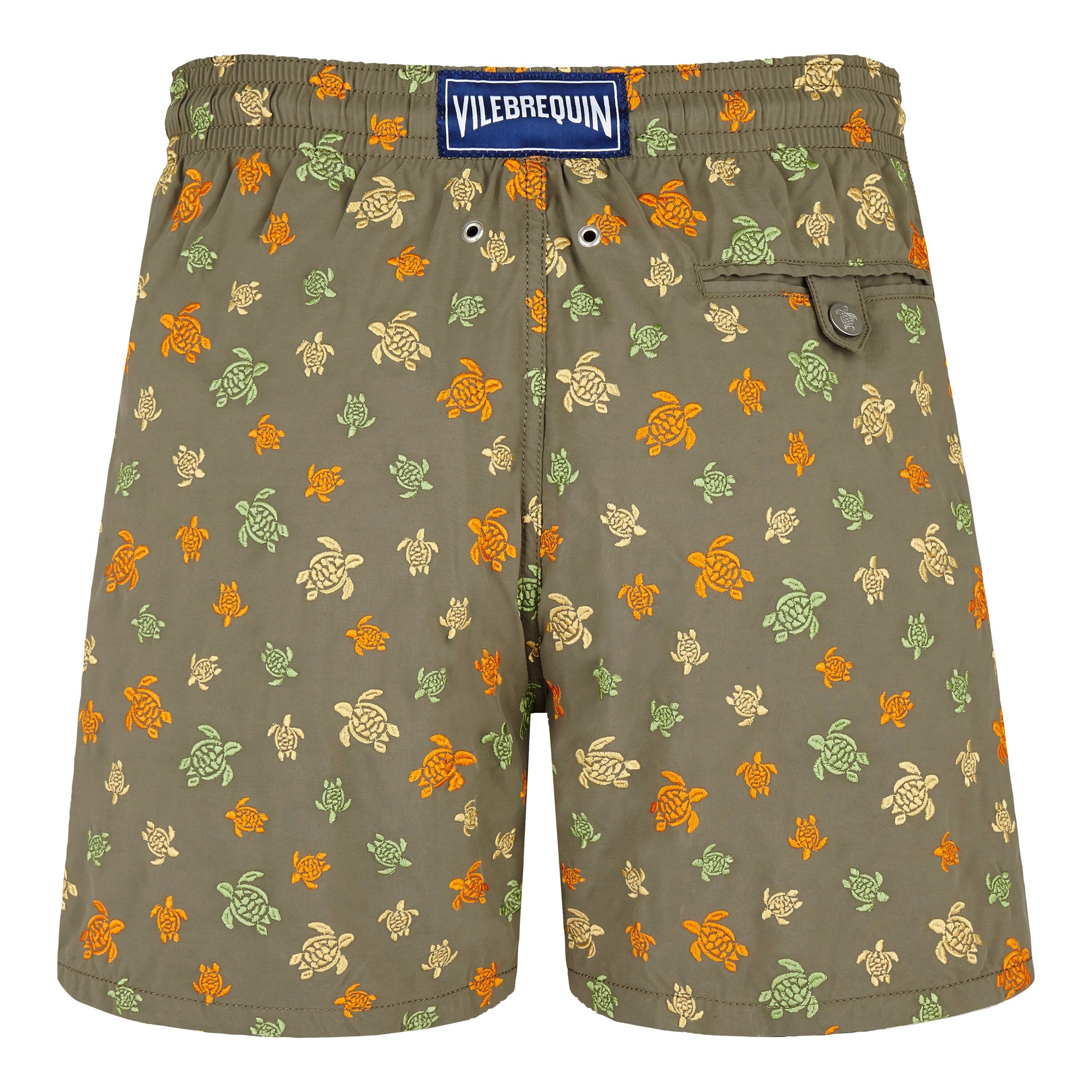 - Men swim trunks with side pockets and back pocket with Turtle personalized round snap button