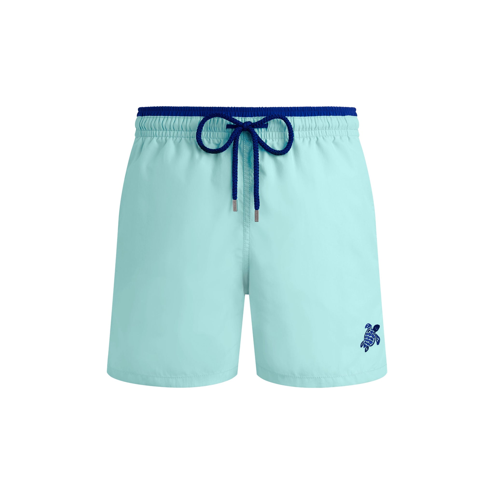 • Bicolor swim trunks for men with contrasting color inside waistband and .5" of outer waistband