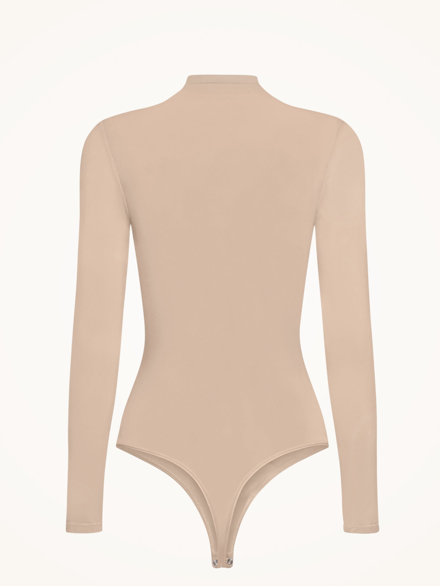 The long-sleeved Buenos Aires bodysuit enhances its second-skin circular knit with a semi-shiny finish. A high turtleneck completes the figure-hugging fit, which fastens with snaps in the gusset. Colored using sustainable dyes that are kinder to the planet.