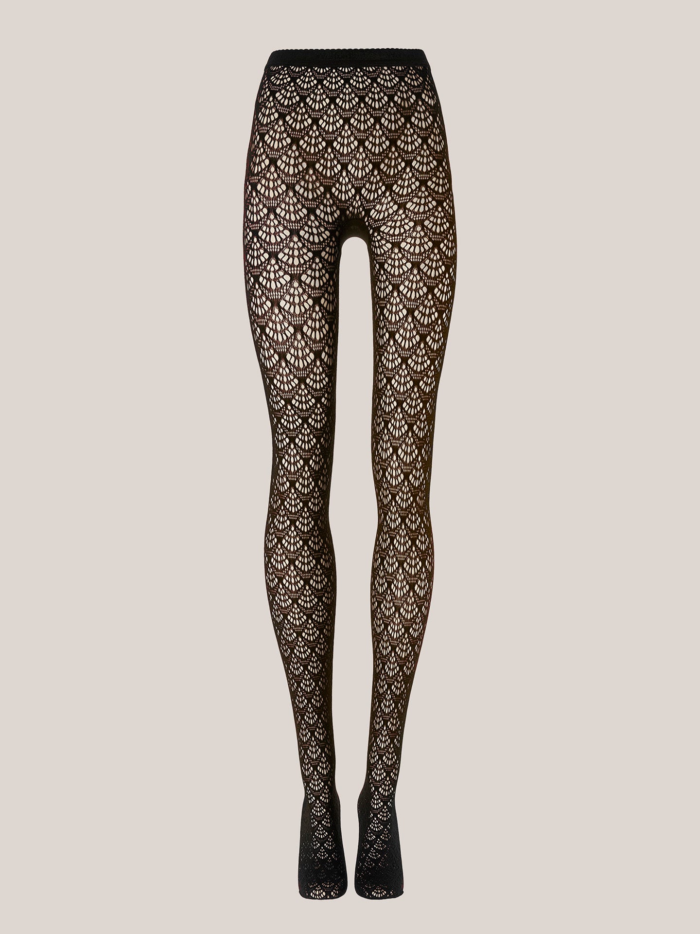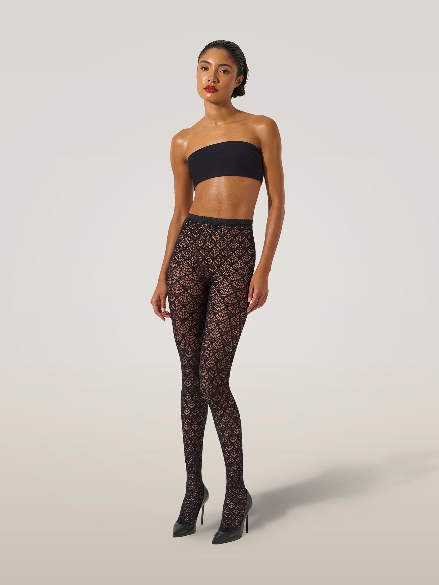 These tights channel a mermaid-inspired look with their geometric scale-like pattern and seamless construction, crafted using Wolford's signature warp knitting technique. They're made from sustainably dyed, recycled ECONYL?? yarn and treated to achieve a modern, velvety matt finish. The soft elastic waistband with logo detailing completes this must-have seasonal pair.