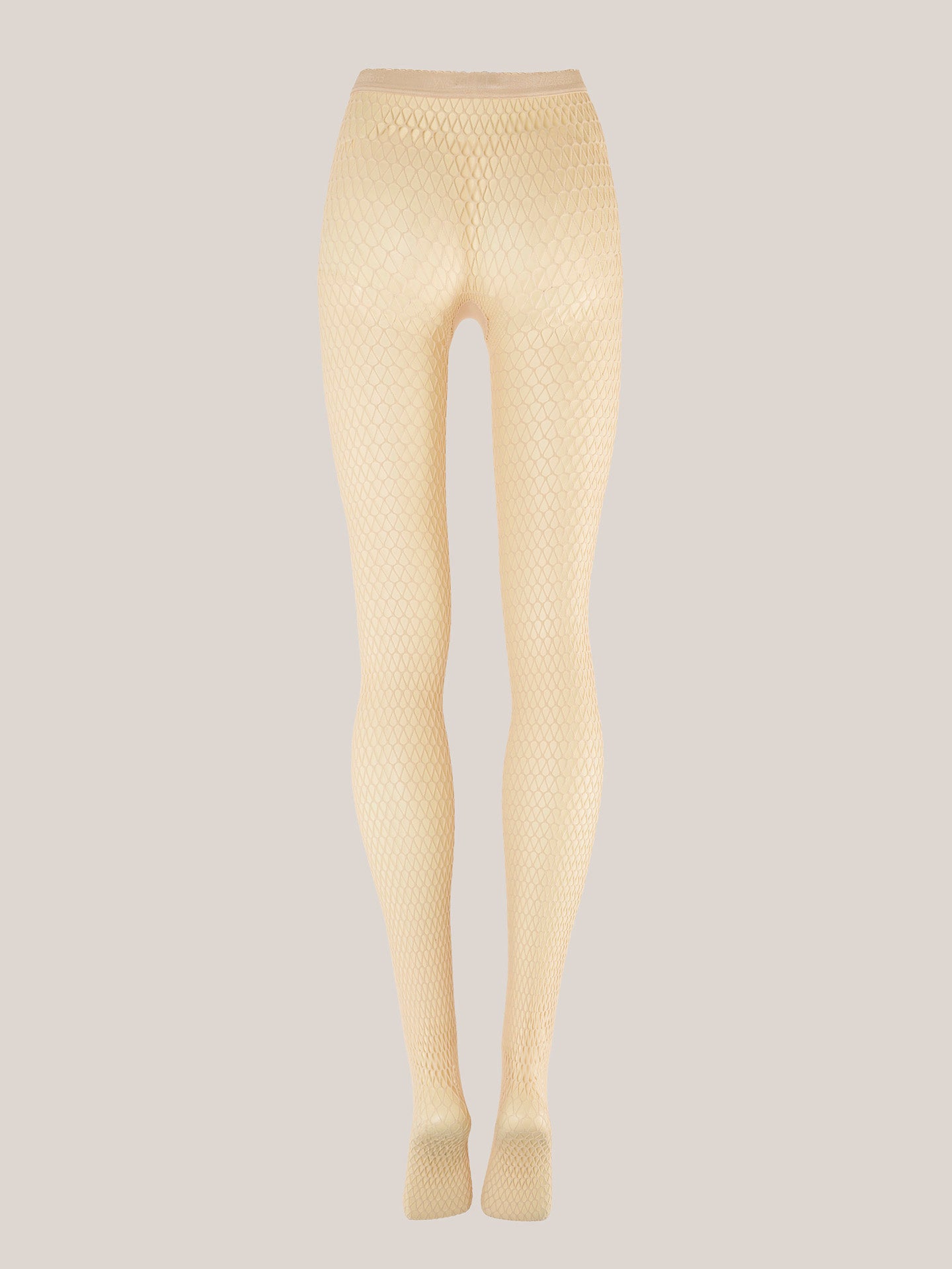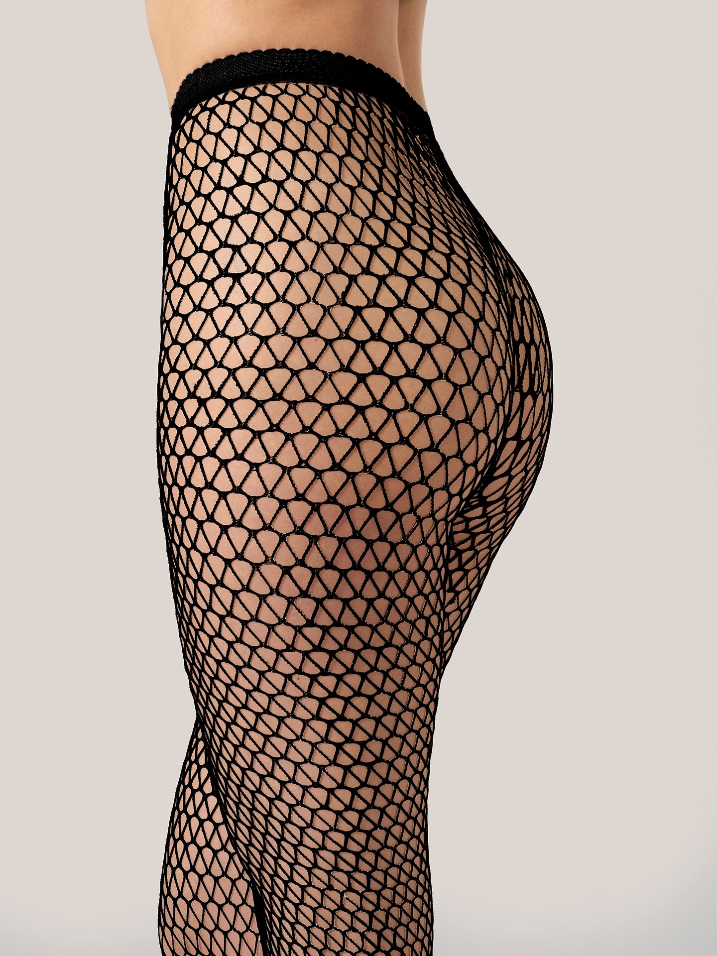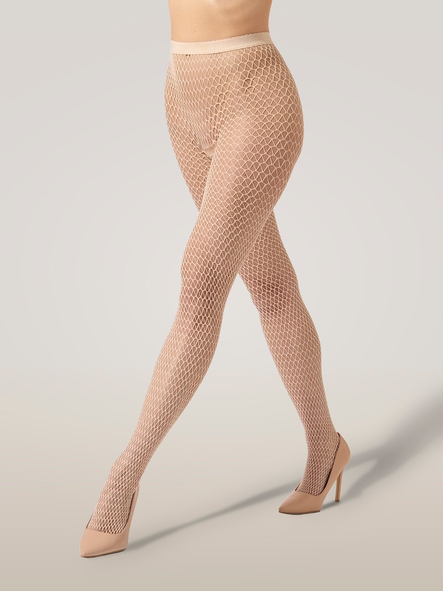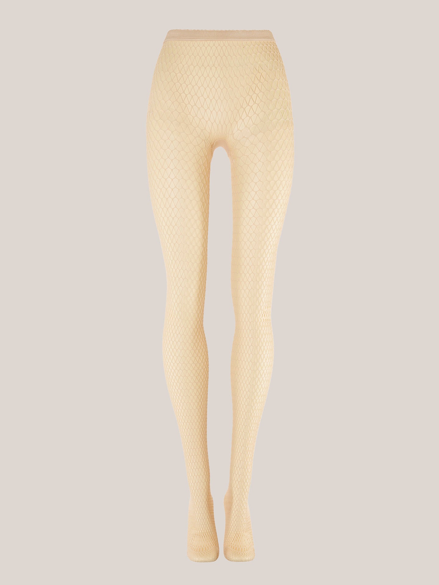 These tights showcase Wolford's creative flair and expertise with their intricate grid pattern and seamless construction, crafted using the warp knitting technique. Designed with a flawless matt finish, they're also cleverly equipped with a fishnet insert at the toes to prevent them from slipping. The soft elastic waistband is accented with logo detailing, subtle yet distinctive.