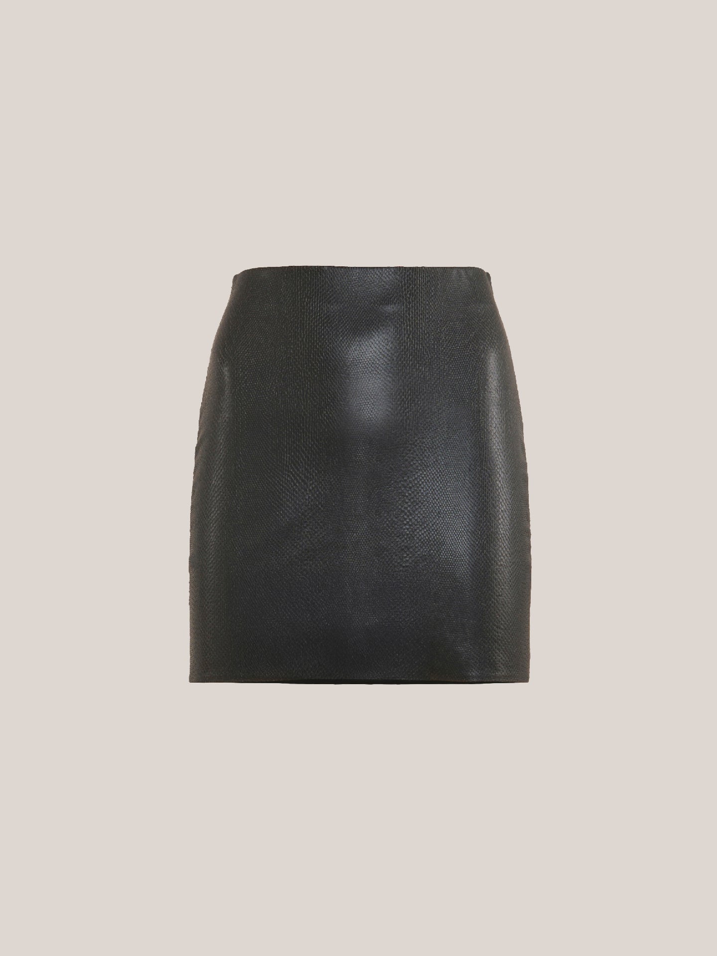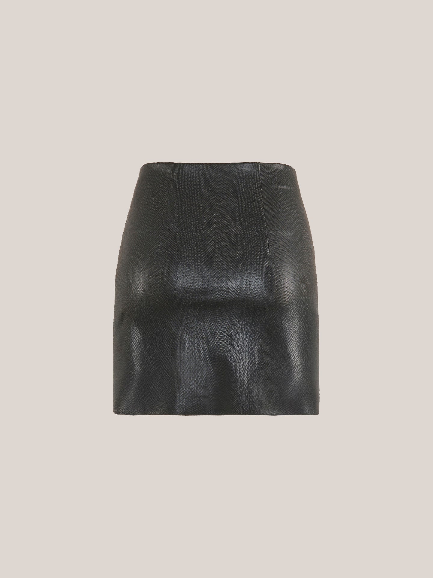 No wardrobe is complete without a mini skirt: this daring iteration is crafted from Wolford's new stretchable faux leather with an embossed snakeskin texture. Simple yet sophisticated, the slim-fit silhouette features a concealed waistband with subtle logo detailing for a sleek, streamlined finish ?Çô perfect for casual and business dress codes.