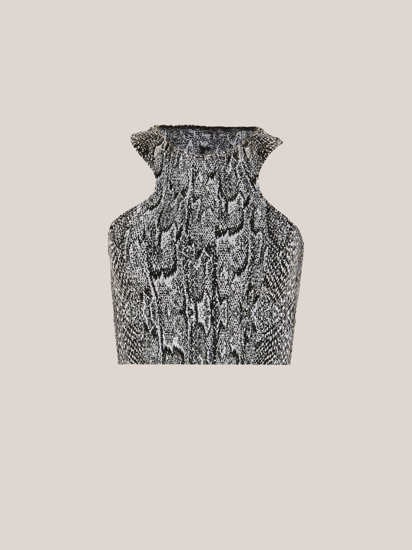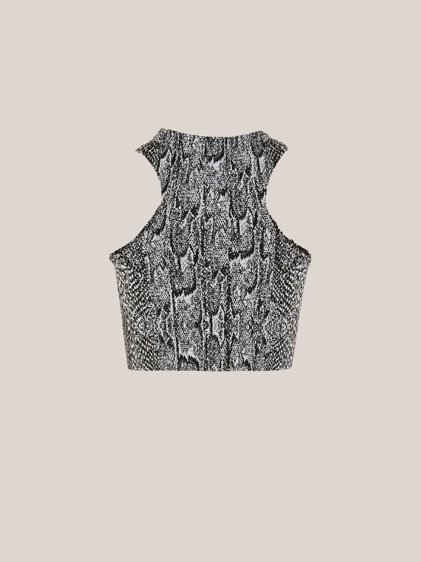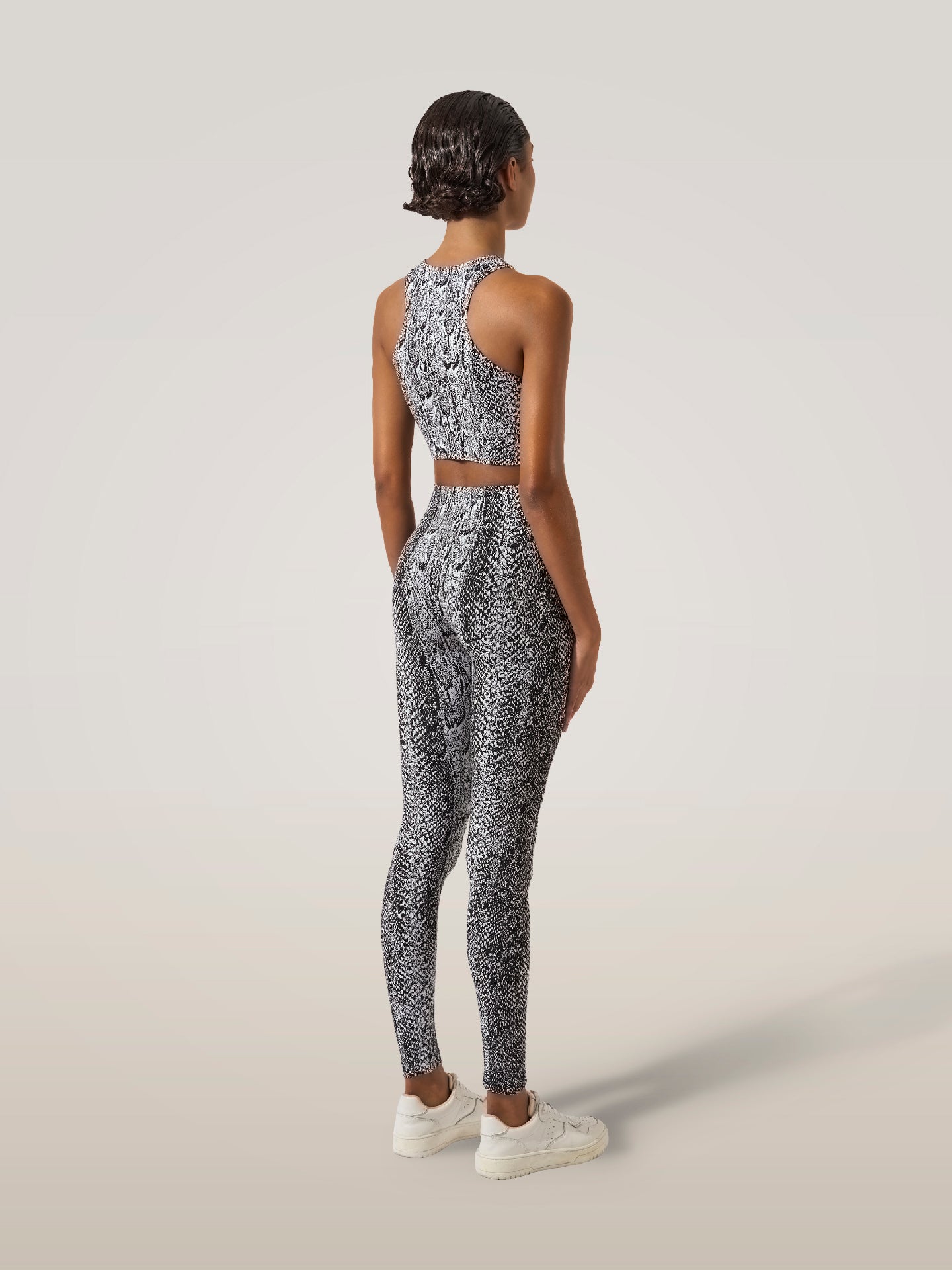 Crop tops remain firmly on the fashion radar, and this python-print version adds a touch of edgy coolness to the classic silhouette. It's crafted using the circular knitting technique from sustainably-dyed Emana?« yarns ?Çô an intelligent fiber that absorbs heat from the human body and returns it as infrared rays to reduce muscle fatigue, enhance recovery, and boost well-being. Don't miss the matching leggings from the collection.