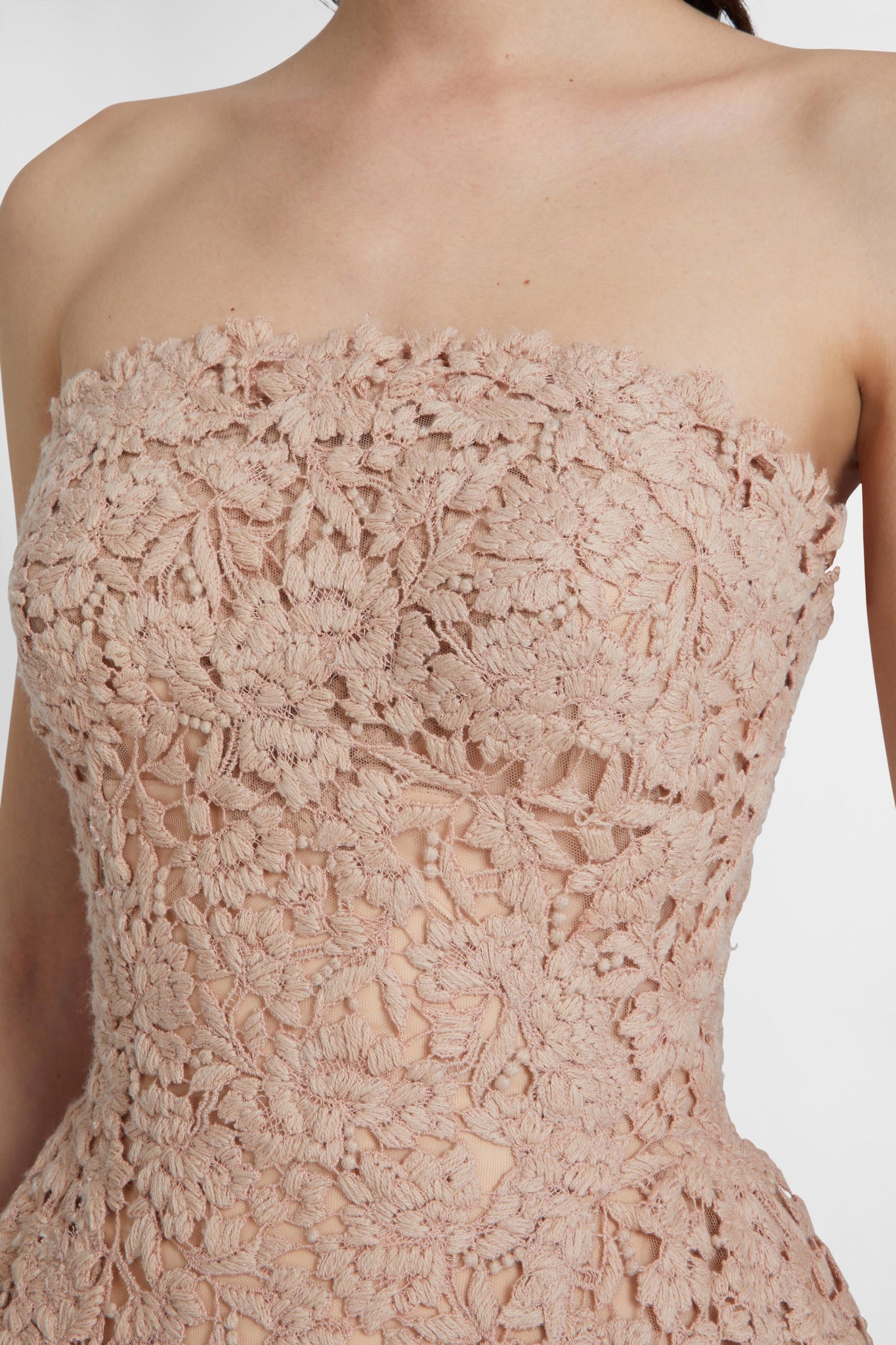 A sculpted and warm elegance, this bustier dress embodies the essence of Ermanno Scervino savoir-faire through an exclusive wool macramé lace. The slightly hourglass cut enhances the silhouette with naturalness, while the lace texture – developed entirely by the creative team – reinterprets the Maison's iconic motif in a contemporary key. The mélange wool yarns, in the warm and natural tones of winter, make this dress the perfect meeting between craftsmanship and modernity. Made of exclusive wool macramé lace Mélange yarns in natural shades Bustier cut with hourglass line Design developed internally by the Ermanno Scervino team Can be combined with the wool coats of the collection Made in Italy
